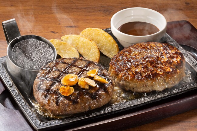 超粗びきビーフ100%ステーキバーグと、頂ハンバーグの食べ比べメニューです。