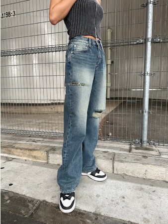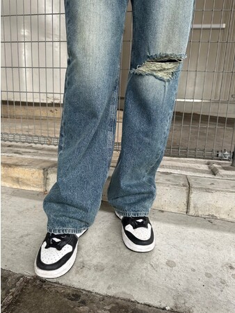 ずるっとルーズなストレートワイドシルエットでトレンド要素をプラスしている。