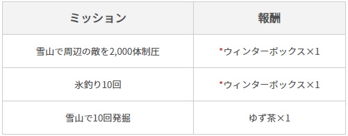 イベント期間中、以下のミッションをクリアすると、イベントページより報酬を獲得することができます。