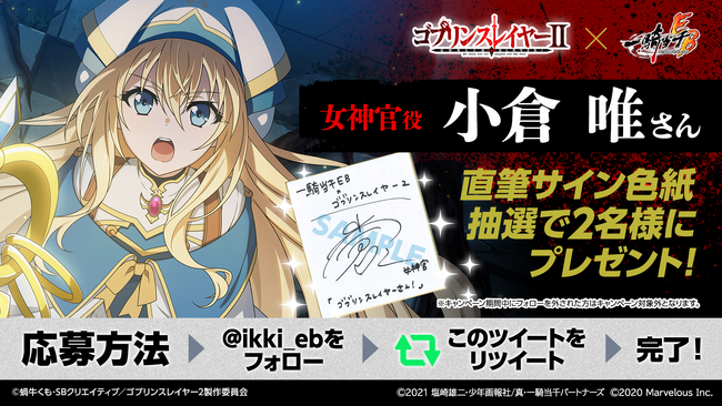 Amazonギフト券や、「女神官」役の小倉 唯さんと「妖精弓手」役の東山 奈央さんの直筆サイン色紙が