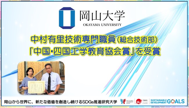 【岡山大学】総合技術部の中村有里技術専門職員が「中国・四国工学教育協会賞」を受賞!