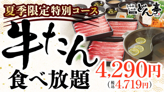 『しゃぶしゃぶすき焼どん亭』は、2023年7月20日(木)から8月下旬の期間限定で、人気の高い「牛たん」を今夏に全力で楽しんでいただけるように、とってもお得な牛たん食べ放題特別コースを全34店舗で販売いたします。