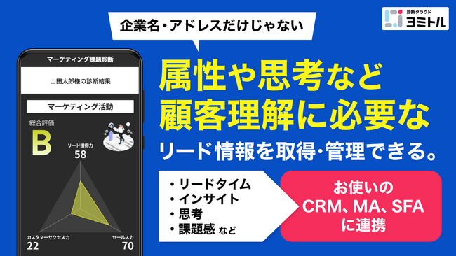 CVR3.6倍 | 診断クラウド ヨミトルが待望の新機能をリリース。CRM/MA/SFAなどとのツール連携で顧客理解を大幅強化。