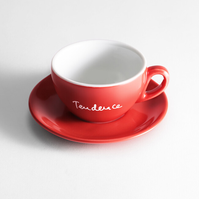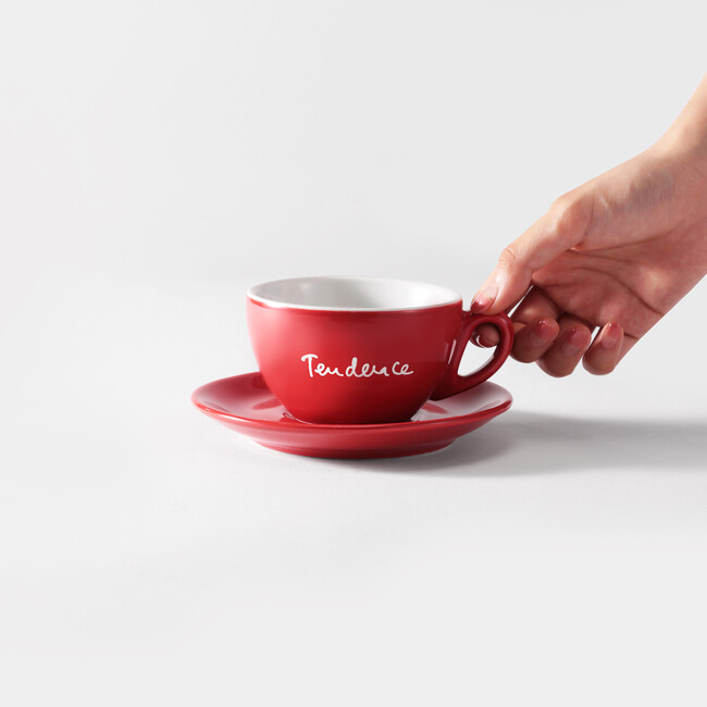 ぽってりと厚みのあるカップは冷めにくく、イタリアンコーヒー独特のアロマや味わいを保ちます。イタリア国内外で信頼の厚いipa社製、“MADE in Italy”のカップ&ソーサーです。カップの側面にはテンデンス創設者の手書きロゴで温かみをプラス。カップを持ち上げると、ソーサーの中心部分には「Tendence(テンデンス)」のブランドポリシーである『Larger Than Life -人生を豊かに-』の手書き文字がさりげなくデザインされています。