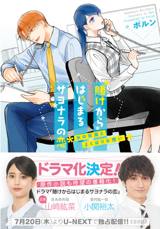 本日7月20日(木)18時からU-NEXTで独占配信開始となる実写ドラマ『賭けからはじまるサヨナラの恋』の原作小説。小説でしか読めない書き下ろし番外編も収録された、ファン必携の一冊となっております。