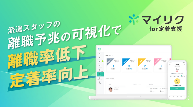 このような背景から、人材派遣会社向けに、LINEの活用で派遣スタッフの離職予兆を可視化し、”離職率低下・定着率向上を実現する”新サービス「マイリク for 定着支援」をリリースいたしました。