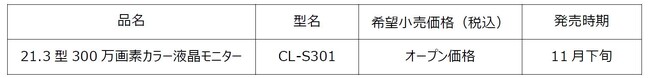 21.3型300万画素カラー液晶モニター「CL-S301」を発売