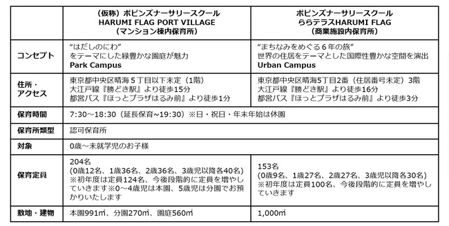 株式会社ポピンズ (東京都渋谷区、代表取締役社長:轟 麻衣子)の子会社である株式会社ポピンズエデュケアは、2024年4月(予定)、東京の新しい時代の象徴となるHARUMI FLAGに認可保育所2園を同時開園(予定)いたします。ポピンズが創出した”エデュケア”=エデュ(教育)とケア(保育)を組み合わせた教育理念をベースに、グローバルな体験やSDGsの施策を取り入れた空間を実現。一流・本物体験に溢れた最高水準の教育を目指します。今後も、進化する街の未来を創る保育所として、新たな価値を創造してまいります。