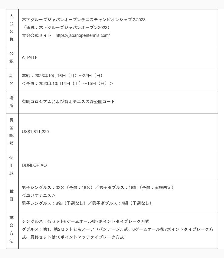 住友不動産ヴィラフォンテーヌ株式会社(本社:東京都新宿区、代表取締役:桝井 俊幸、以下「当社」)は2023年10月14日(土)から22日(日)に開催されるテニスの祭典「木下グループジャパンオープンテニスチャンピオンシップス2023(以下、「木下グループジャパンオープン2023」)のオフィシャルスポンサー契約を締結いたしました。これを受けて、当社では2023年8月5日(土)より木下グループジャパンオープン2023の観戦チケット付き宿泊プランを当社公式サイトにて販売することを決定いたしました。