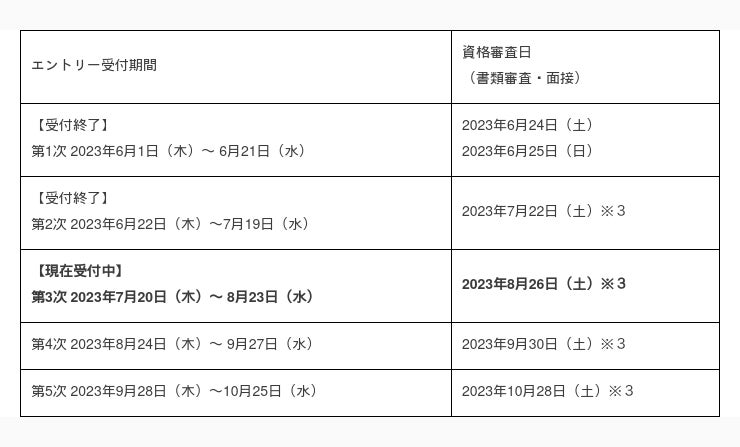 AOエントリー受付期間と資格審査・面接日