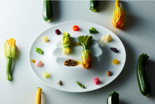 レストランでは、朝食にズッキーニやブロッコリー、パプリカのほか、その時々に入荷した野菜を使った野菜料理、お米の食味日本一を決める全国規模の大会「米-1グランプリinらんこし」で準グランプリを2度受賞した「石川農園」の「ななつぼし」をご提供します。ランチコースでは、「コロポックル村」のズッキーニの花を使った魚料理や、有機JAS認証を受けた「関野DIY農場」のフルティカトマトを使った前菜などをご用意します。