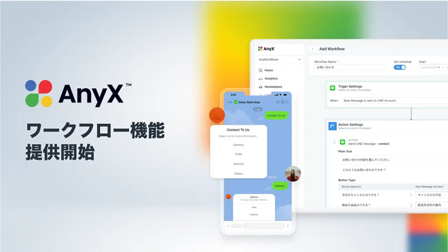 AnyMind Group株式会社(読み:エニーマインドグループ、代表取締役CEO:十河 宏輔、以下「当社」) は、ECマネジメントプラットフォーム「AnyX」において、EC業務の効率化を実現する新機能「ワークフロー」の提供開始しましたので、お知らせいたします。