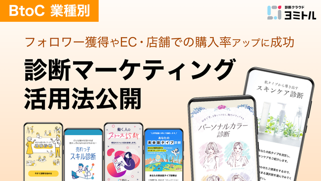 ヨミトルは、インターネット上で手軽に診断を行えるプラットフォームであり、幅広い業種のユーザーに向けてサービスを展開しています。今回公開された業種別診断マーケティング活用法は、SNSプロモーションにおいてフォロワー獲得やECや実店舗での購入率の向上、会員登録への流入などのベネフィットを得ることができる効果的な手法です。