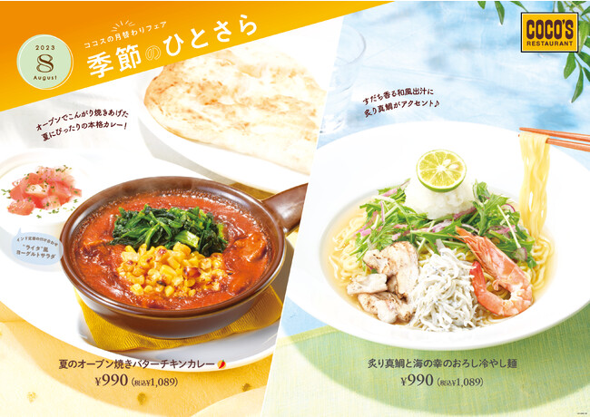 【ココス】ココスの夏の定番“カレー”と“冷やし麺”に新商品が登場!熱々のバターチキンカレーと爽やかな海鮮冷やし麺で夏を満喫♪