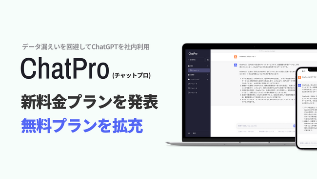 法人向けChatGPTサービス「ChatPro(チャットプロ)」、新しい料金プランを発表。無料プランの機能を拡大
