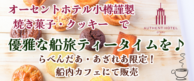 船内カフェにてオーセントホテル小樽謹製の焼き菓子・クッキーをお召し上がりいただけます。