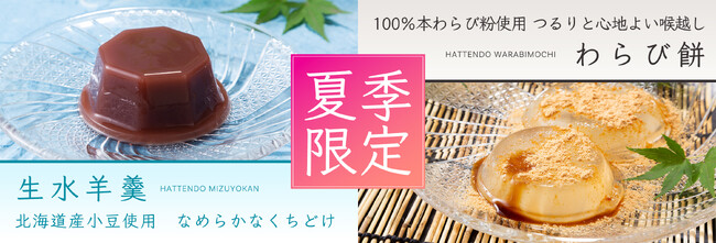 株式会社八天堂(本社:広島県三原市、代表取締役:森光孝雅)は、八天堂オンラインショップにて「生水羊羹」と「わらび餅」を2023年7月31日(月)より販売開始しました。