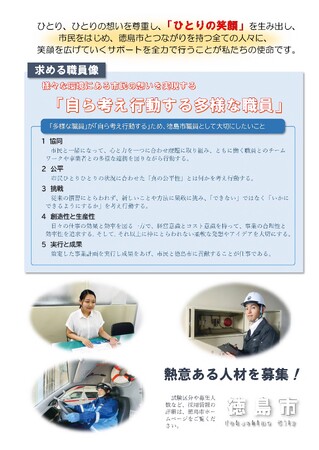 徳島市が掲げる将来像を目指し、様々な環境にある市民の想いを実現するために、自ら考え行動できる人材を募集します。