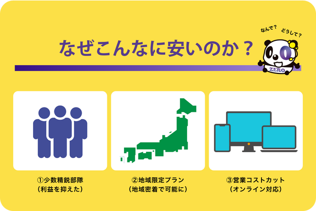 ZEROコピの安さの秘訣は3つあります。