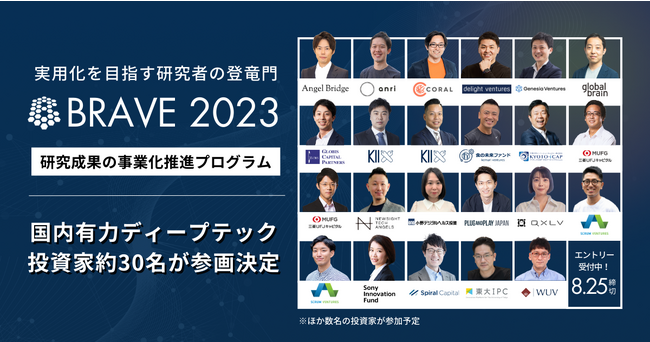 実用化を目指す研究者の登竜門「BRAVE」2023の本エントリー開始。国内有力ディープテック投資家約30名が参画決定【8/25締切】