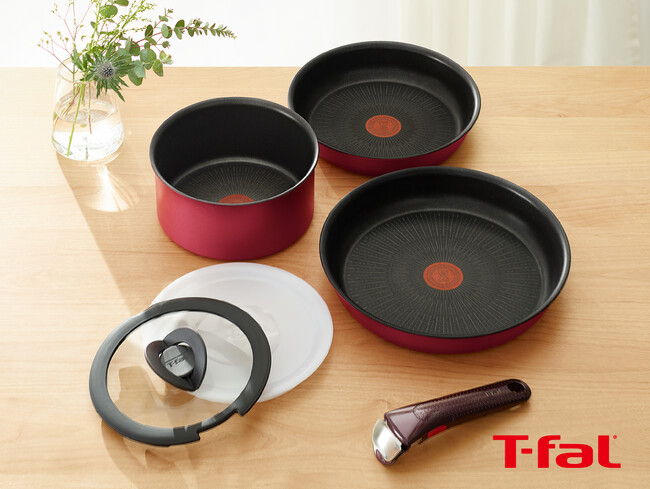 【6枚コース】 T-fal 取っ手の取れるフライパンセット(ルージュ)