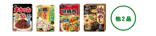 本かつおN.P.、混ぜ込みわかめ<鶏そぼろ>、旨い!中華2回分<回鍋肉の素>、鶏めしの素、他2品