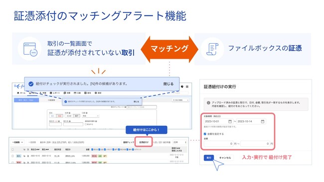 <証憑の回収・紐付けで仕訳・証憑・決済明細を一元管理>
