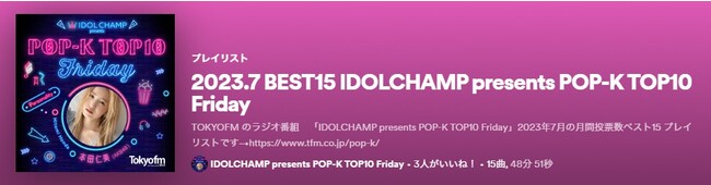 ラジオ番組「IDOL CHAMP presents POP-K TOP10 Friday」月間ランキング発表!MVPはBTS!上位15曲は「Spotify」の番組公式プレイリストにて公開