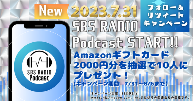 SBSラジオの公式ツイッター(現X : https://twitter.com/radio_sbs )では、今月6日まで、Amazonギフトカードがあたるキャンペーンも実施中です。