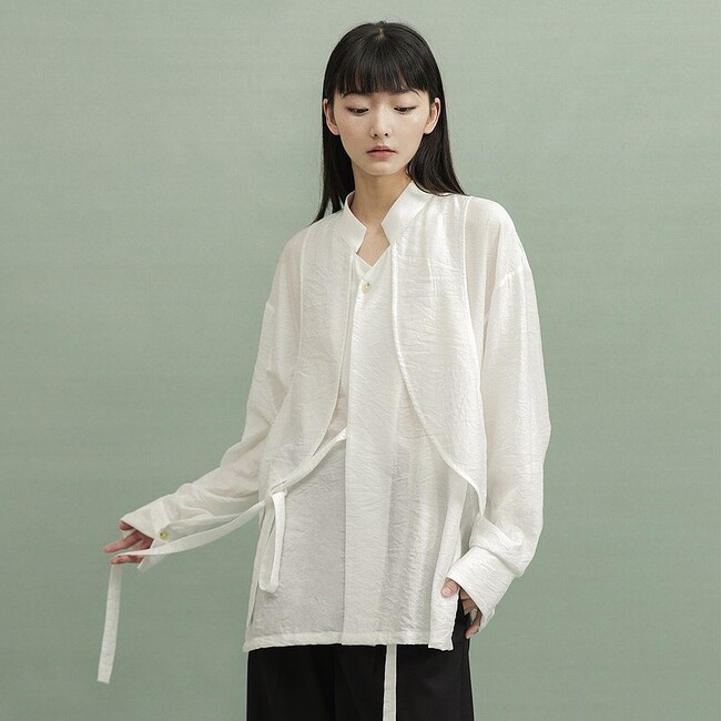 中国の伝統的な服飾文化を守りながら、常にファッションの多様性を追求するジェンダーレスブランド「VAPOURBLUE」。クロスカラーシャツは伝統的な衣装とトレンチコートのシルエットにインスパイアされたデザインです。通気性がよく夏でも涼しく快適な着心地の「禅服(ぜんぷく)」がとても人気です。