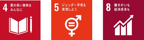 これらの取り組みは、SDGs「4.質の高い教育をみんなに」のほか、「5.ジェンダー平等を実現しよう」「8.働きがいも経済成長も」にも繋がっていると考えています。