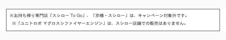 ■概要:応募期間中、対象金額2,500円(税込)に達したスシローのレシートを撮影し、スシローHP内にリンクしてある専用キャンペーンサイトからTwitterアカウントもしくは、メールアドレスを入力の上レシート写真を添付して応募すると、抽選で350名様に「ユニトロボ マグロスシファイヤーエンジン」が当たるキャンペーンです。