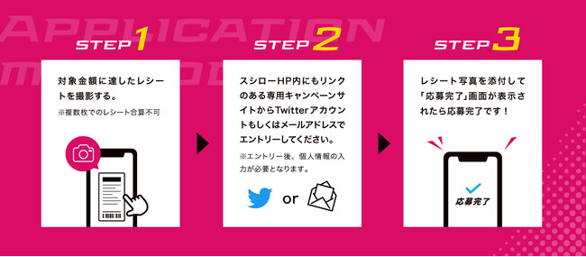 本キャンペーンは、対象金額に達したスシローのレシートを撮影し、スシローHP内にもリンクのある専用キャンペーンサイトからTwitterアカウントもしくは、メールアドレスを入力の上レシート写真を添付して応募すると、抽選で「ユニトロボ マグロスシファイヤーエンジン」が当たるキャンペーンに参加することができます。