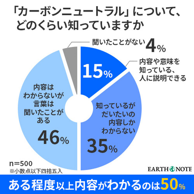 「カーボンニュートラル」の内容をある程度以上知っている人は50%