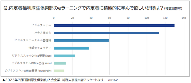 など社会人への意識改革に必要なコンテンツが多数用意されており、リロクラブが2023年7月に総務人事担当者向けにおこなったアンケートでは、8割以上の総務人事担当者が「ビジネスマナーを内定者に学ばせたい」と回答されました。