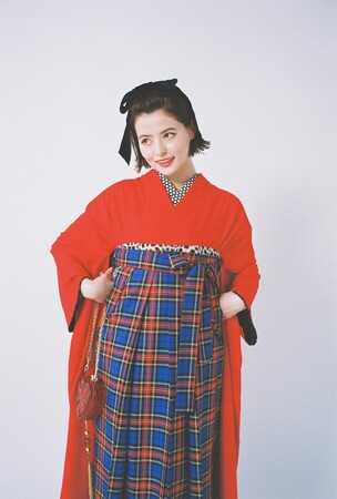 [卒業袴の新たな提案]チェックやフェイクレザーを使用した斬新で個性的なスタイリング。