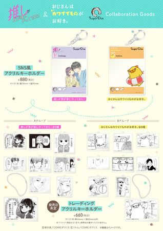 SNSの画面をイメージしたデザインのSNS風アクリルキーホルダーと、マンガのコマ画像イラストを使用したトレーディングアクリルキーホルダーを販売いたします。
