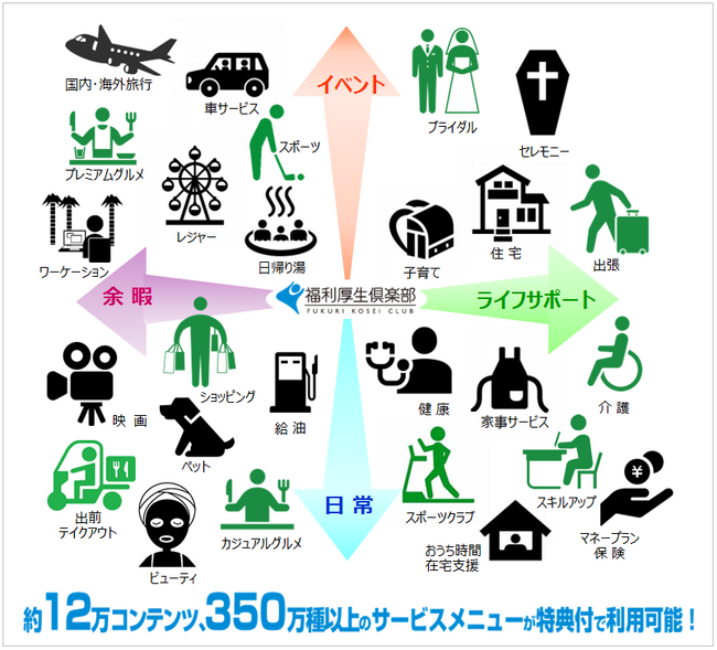 さらに、ヘルスケアサポート・スポーツジムなどへの利用強化はもちろんのこと、健康経営※7 や女性活躍の推進支援など、様々な時代のニーズにお応えできるサービスをご用意。人事総務・労務担当者の業務負荷軽減を目指すとともに、従業員エンゲージメントの向上につながるソリューションをお届けいたします。