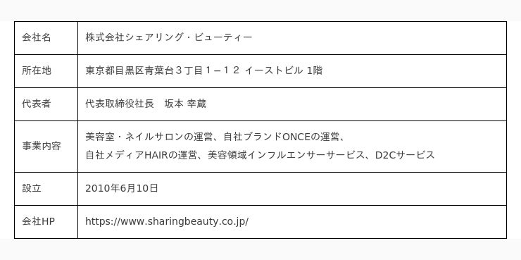 「株式会社シェアリング・ビューティー」のプレスリリース