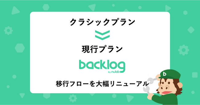 株式会社ヌーラボ(本社:福岡県福岡市、代表取締役:橋本正徳、以下 ヌーラボ)が提供しているプロジェクト管理・タスク管理ツール「Backlog」は、2017年9月で新規のご契約受付を停止していた「クラシックプラン」をお使いのお客様が現行プランへ移行するための「移行フロー」をリニューアルしました。このリニューアルにより、お客様の移行にかかる手間が大幅に削減され、セキュリティ面が強化された現行プランをスムーズにご利用開始いただくことができます。