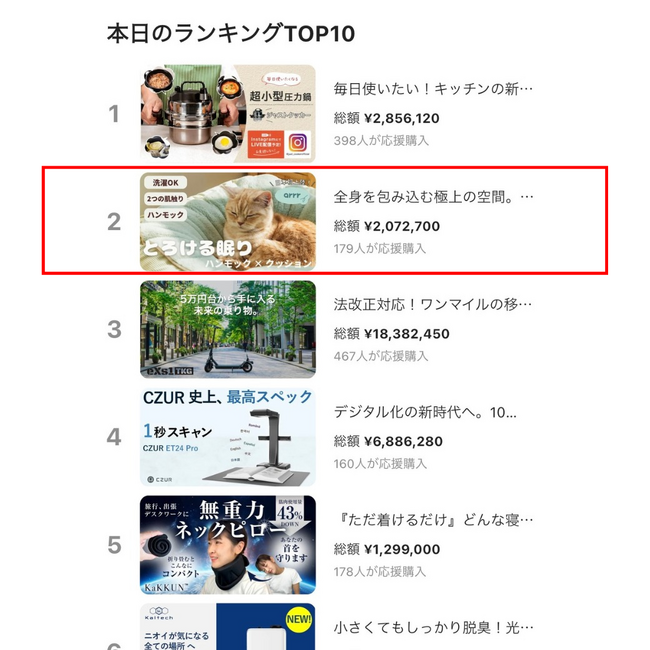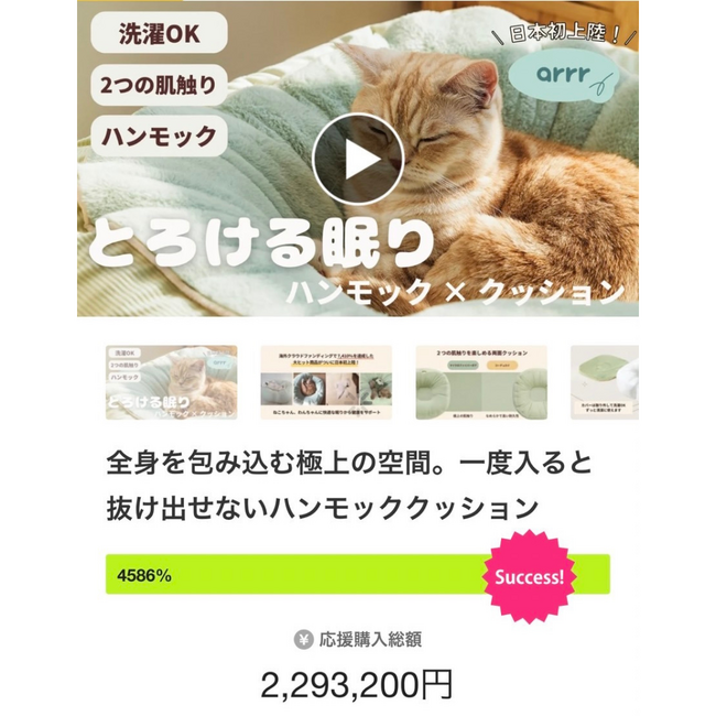 開始後24時間で目標金額の4586%を達成するなど、出だしは好調。