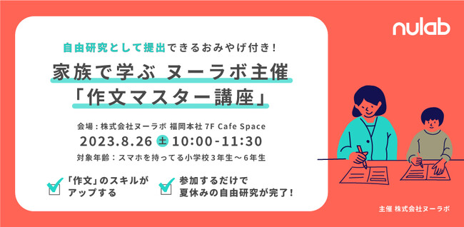 ヌーラボ、テキストコミュニケーションについて考える小学生向けセミナー 家族で学ぶ「作文マスター講座」を8月26日(土)に福岡市で開催決定
