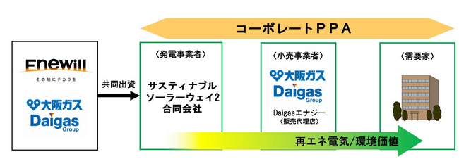 株式会社エネウィル(本社:東京都千代田区 代表取締役社長:坂根 多加弘、以下「エネウィル」)は、大阪ガス株式会社(代表取締役社長:藤原 正隆、以下「大阪ガス」)と共同で非FIT/非FIP太陽光発電所の開発をおこなうことを決定いたしました。