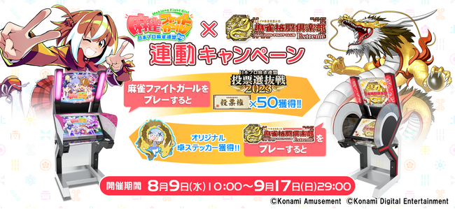 ガール』とアミューズメント施設向けビデオゲーム『麻雀格闘倶楽部 Extreme』にて、連動キャンペーン※も開催していますので、ぜひ、この機会に『麻雀ファイトガール』をお楽しみください。
