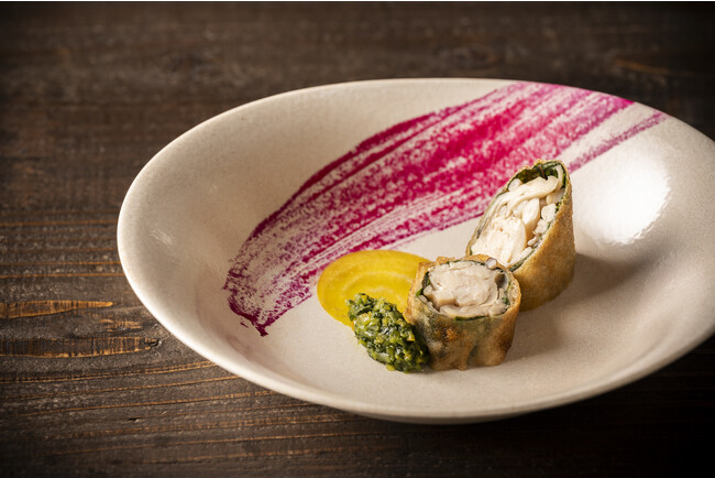 白馬村に来て約1年が経とうしております。その中で、もっと白馬村に根差したコースを作りたいと思い、「Shinshu Blessings Dinner -Autumn-」を考案いたしました。特に「TASTE」については、地元食材へのこだわりはもちろん、一皿一皿に秋の香りを楽しめる工夫を凝らしています。フェンネルやタイムなどのハーブの香りから、秋を代表する松茸の芳醇な香りまで、見た目にも味わいにも秋を感じる料理をお楽しみください。