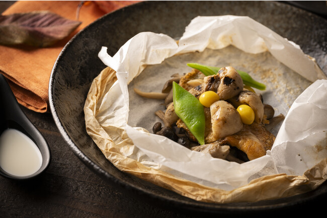 3種のうち、特にシェフ一押しの「TASTE」は、秋の香りを楽しむ趣向を凝らしたコース。白馬産シナノユキマスのマリネは、プチプチとした白馬産ほおずきの食感とフェンネルの甘い香りがアクセント。信州産の薩摩芋を使用したスープは、スイーツのようなまろやかな甘みのポタージュに、タイムの爽やかな香りが広がります。包みを開けた瞬間に松茸がふわりと香るのどぐろの包み焼きは、脂がのったのどぐろの濃厚な味わいと、ほろ苦い銀杏の香ばしさで、秋の香りをお楽しみください。メインの信州プレミアム牛フィレ肉は、松茸や栗と共に目の前で網焼きにし、芳醇な香りがお肉の旨味をより引き立てる一品です。