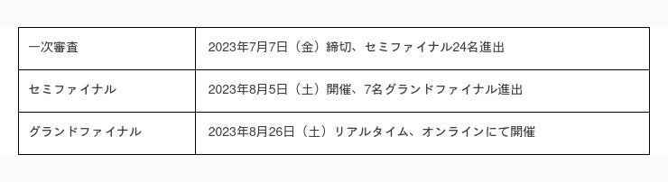 本コンテストは、コロナ禍で海外留学などの機会を失っていた中高生に、「自身を英語で表現する機会」を提供する目的で2021年にスタート。3回目となる今年は募集開始から多くの反響があり、先着200名だった当初の応募人数を拡大、最終的に前年の約2.2倍となる429名の応募がありました。中高生たちから寄せられた「未来の“なりたい私”」をテーマとしたスピーチは、目標とする人物像やあこがれる人、それぞれの将来の目標などについて、どのように英語で表現したら他者に伝わるのかがしっかり意識された力作が集まりました。8月5日(土)に行われた一次予選通過者24名によるセミファイナルを経て、決勝進出の7人が決定。8月26日(土)にオンラインで行われる決勝大会・グランドファイナルで入賞者が決まります。厳しい審査を経た中高生7名の素晴らしいスピーチを、ぜひご覧ください。