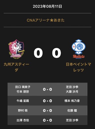 ノジマTリーグ2023-2024シーズン公式戦 8月11日(金)18:00試合開始 九州アスティーダ vs 日本ペイントマレッツ 対戦オーダー発表