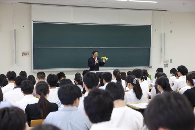 また、法学部ではサプライズで那須保友学長が訪れ、「皆さん一人ひとりが主役です。岡山大学は学生の夢を応援しています」と応援メッセージを送りました。その後行われた写真撮影では、「どこから来たの?」と学長が高校生に声をかける場面もみられるなど、和やかな雰囲気で交流しました。