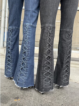 今回の【BackレースUPフレアデニムパンツ】にも施されており、